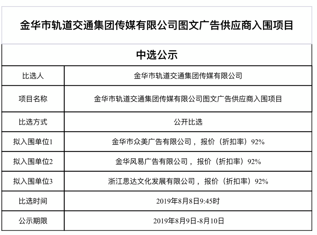 金華市金義東軌道交通有限公司運(yùn)營環(huán)境長效管理系統(tǒng)項(xiàng)目中標(biāo)候選人公示