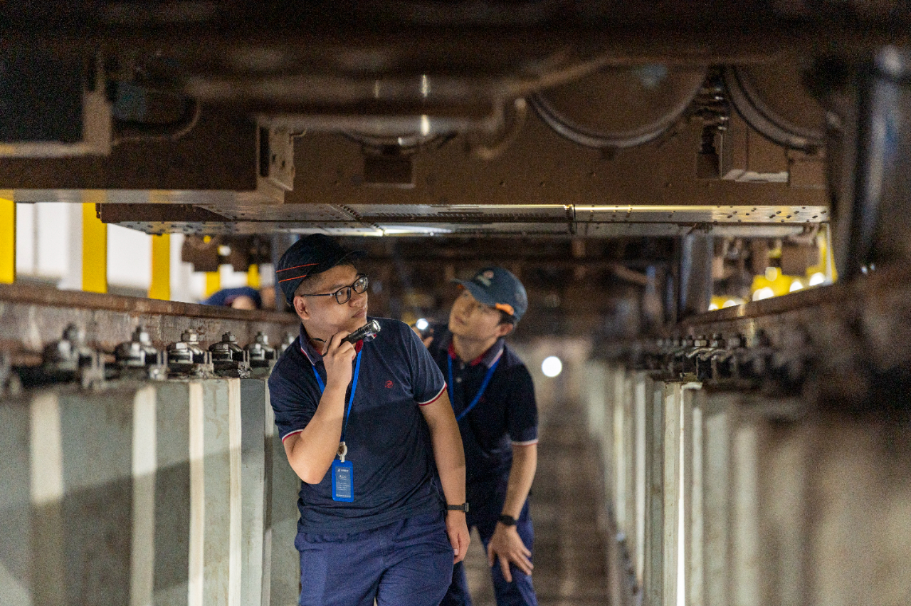 6月11日,在浙江省金華市金義東市域軌道交通工程塘雅車輛段,青年職工選手在參加軌道交通車廂安檢項(xiàng)目技能比武。當(dāng)日,浙江省金華市舉行第三屆軌道交通青年職工技能比武大賽。從全市1000多名專業(yè)人員中選撥出來的282名青年職工選手參加應(yīng)急處置、服務(wù)禮儀、手動駕駛、行車故障處置等13個項(xiàng)目的角逐,全面提升城市軌道交通從業(yè)人員的業(yè)務(wù)技能水平,推動技能人才隊(duì)伍高質(zhì)量發(fā)展。